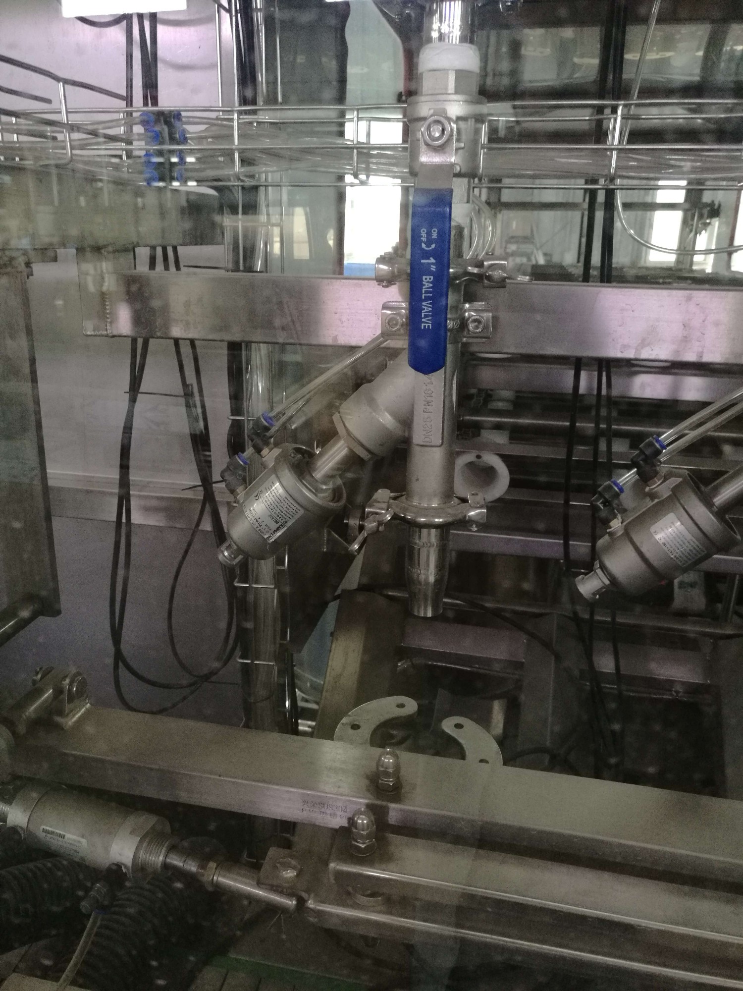 本自動灌裝機(jī)主要用于三/五加侖桶裝水的灌裝,灌裝方式采用新型常壓灌裝,采用變頻調(diào)速。無回流或溢流水產(chǎn)生。本自動灌裝機(jī)灌裝原理是:空桶在常壓灌裝時,灌裝頭氣阻部件處于常開狀態(tài),進(jìn)行大流量液位灌裝,在接近可控液位(規(guī)定18。9L)桶內(nèi)的水壓與儲水桶的壓力相等時,灌裝頭氣阻部件處于常閉狀態(tài),從而保證液位的精準(zhǔn)。本自動灌裝機(jī)灌裝無泄漏,無溢流水,為客戶節(jié)約了大量的水電氣資源。