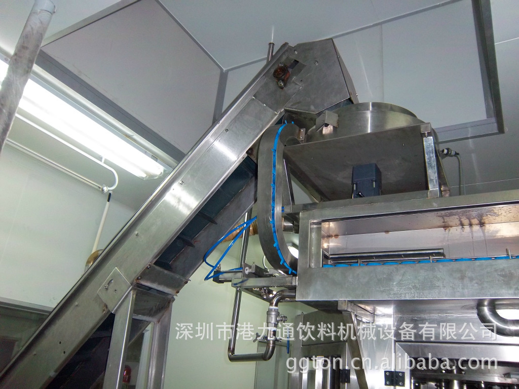 蓋提升機(jī):蓋提升機(jī)采用管道或鏈條將蓋由低處提升到蓋清洗機(jī)的容蓋器內(nèi),減少人工的勞動(dòng)強(qiáng)度,同時(shí)使灌裝間保持了較高的潔凈度,提高了產(chǎn)品的質(zhì)量。蓋提升殺菌清洗機(jī)采用PLC控制,可單機(jī)獨(dú)立運(yùn)行,也可連線布置,整機(jī)簡(jiǎn)潔明快,整機(jī)可靠性高。故障率極低。蓋提升機(jī)的運(yùn)用真正意義上實(shí)現(xiàn)了全自動(dòng)化作業(yè)及無人車間的實(shí)現(xiàn)。廣東省深圳市港九通飲料機(jī)械設(shè)備有限公司,是一家專業(yè)研發(fā)生產(chǎn)銷售各種純凈水,山泉水,礦泉水,飲用水灌裝
